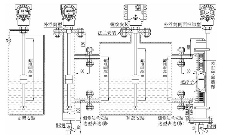 過程連接:DN50、DN80、DN100法蘭或M18×1.5、M20×1.5、G3/4"陽螺紋或特殊定制