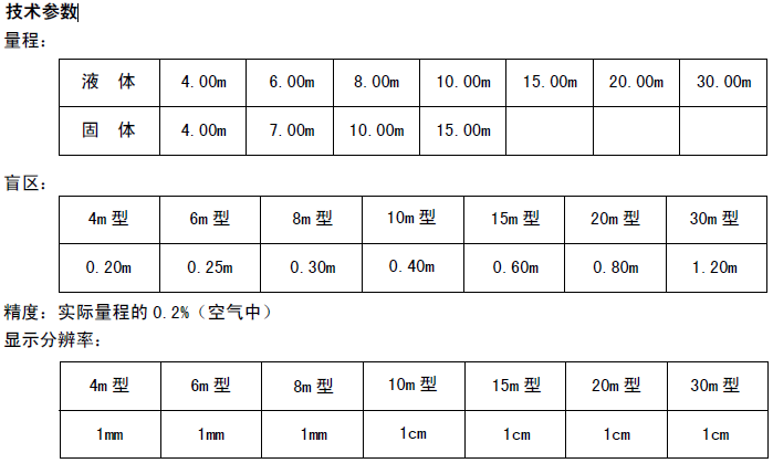 l   聲波束角:8°(3db) 4m、6m、8m 型  5°(3db) 10m、15m、20m、30m 型